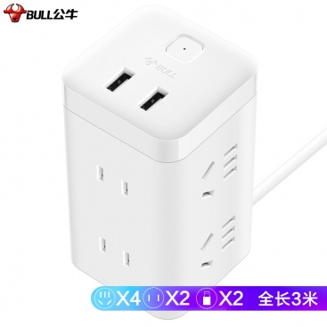 • 商品名稱:公牛(BULL) 大魔方智能USB插座 插線板/插排/排插/接線板/拖線板 GN-UU2126 白色魔方USB插座全長(zhǎng)3米