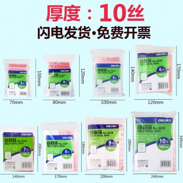 • 得力(deli)自封袋 塑封袋子加厚密封包裝袋 透明封口袋 100個/包 5號(14*10cm)3024