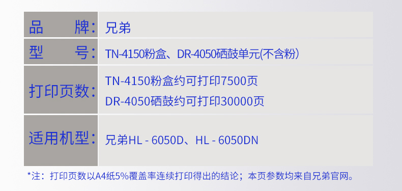 • 商品名稱:兄弟TN-4150碳粉盒 適用HL-6050D 6050DN打印機
