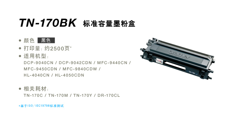 • 商品名稱:兄弟(brother) TN-170BK 黑色粉倉(cāng) (適用HL-4040CN DCP-9040CN MFC-9440CN)