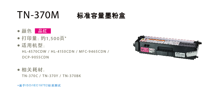 • 商品名稱:兄弟(brother) TN-370M 品紅色粉倉(適用于HL-4150CDN/HL-4570CDW/DCP-9055CDN/MFC-9465CDN)