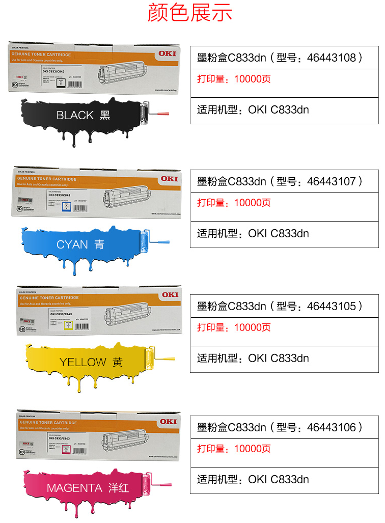 • 商品名稱:OKI C833dnl LED激光打印機(jī)青色墨粉盒原廠原裝耗材10000頁(yè)