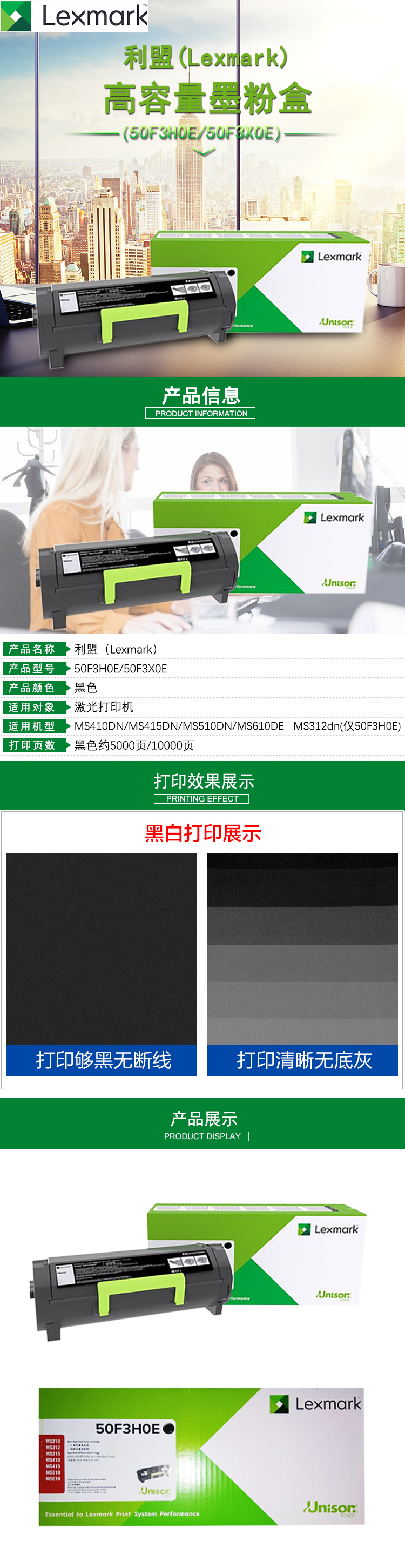 • 商品名稱:利盟(Lexmark)50F3H0E標(biāo)準(zhǔn)容量墨粉盒 (適用MS312dn/MS610de/MS510/410dn//MS415dn機(jī)型)約5000頁(yè)