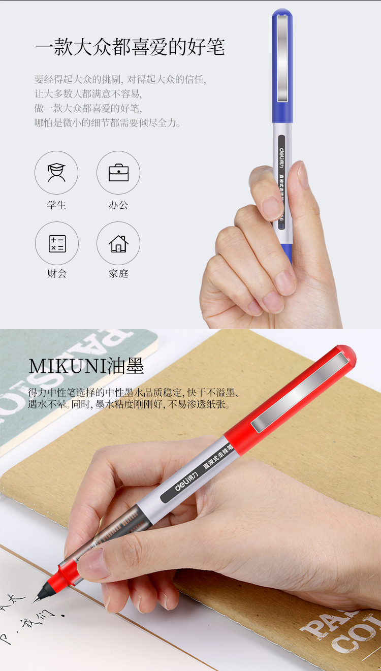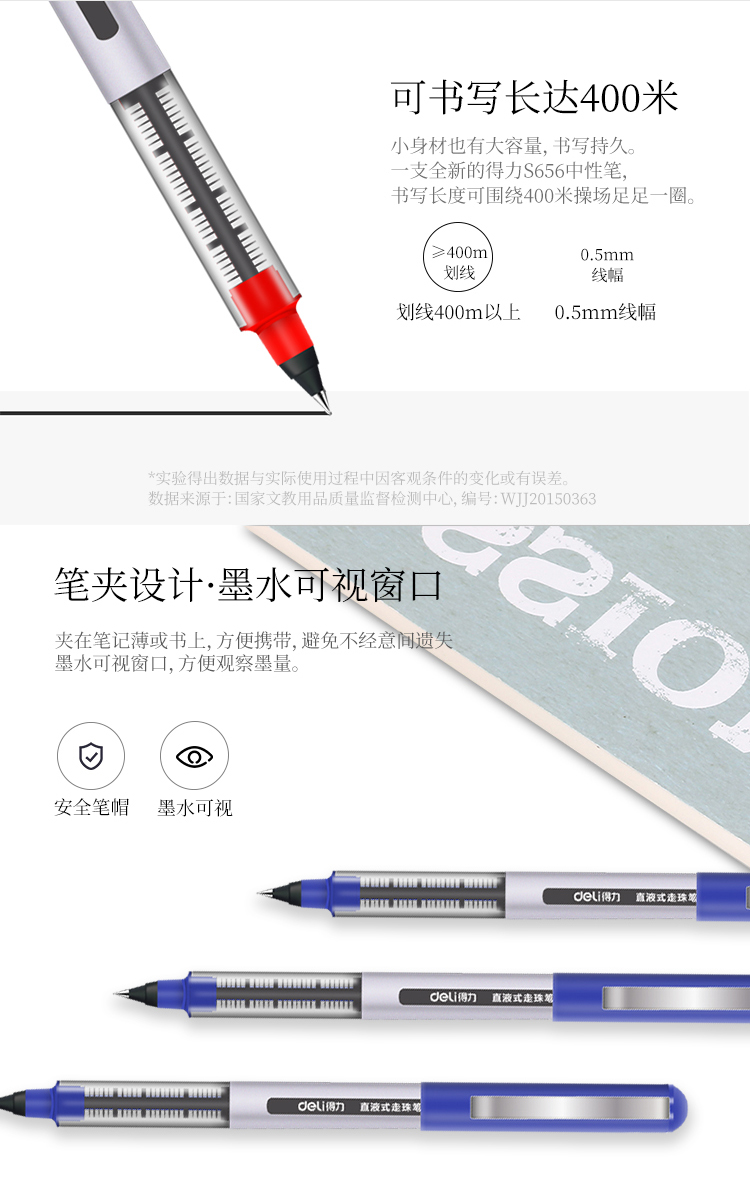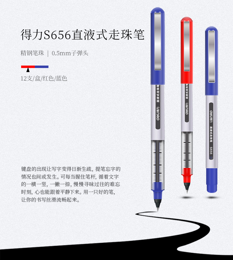 • 商品名稱:得力(deli)0.5mm藍(lán)色直液式走珠簽字筆學(xué)生考試中性筆 12支/盒S656