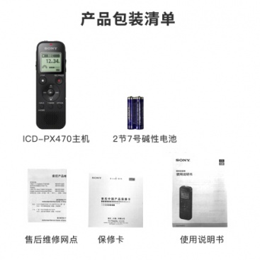 • 商品名稱:索尼(SONY)ICD-PX470 4GB 支持線性錄音 便攜式學(xué)習(xí)型數(shù)碼錄音棒