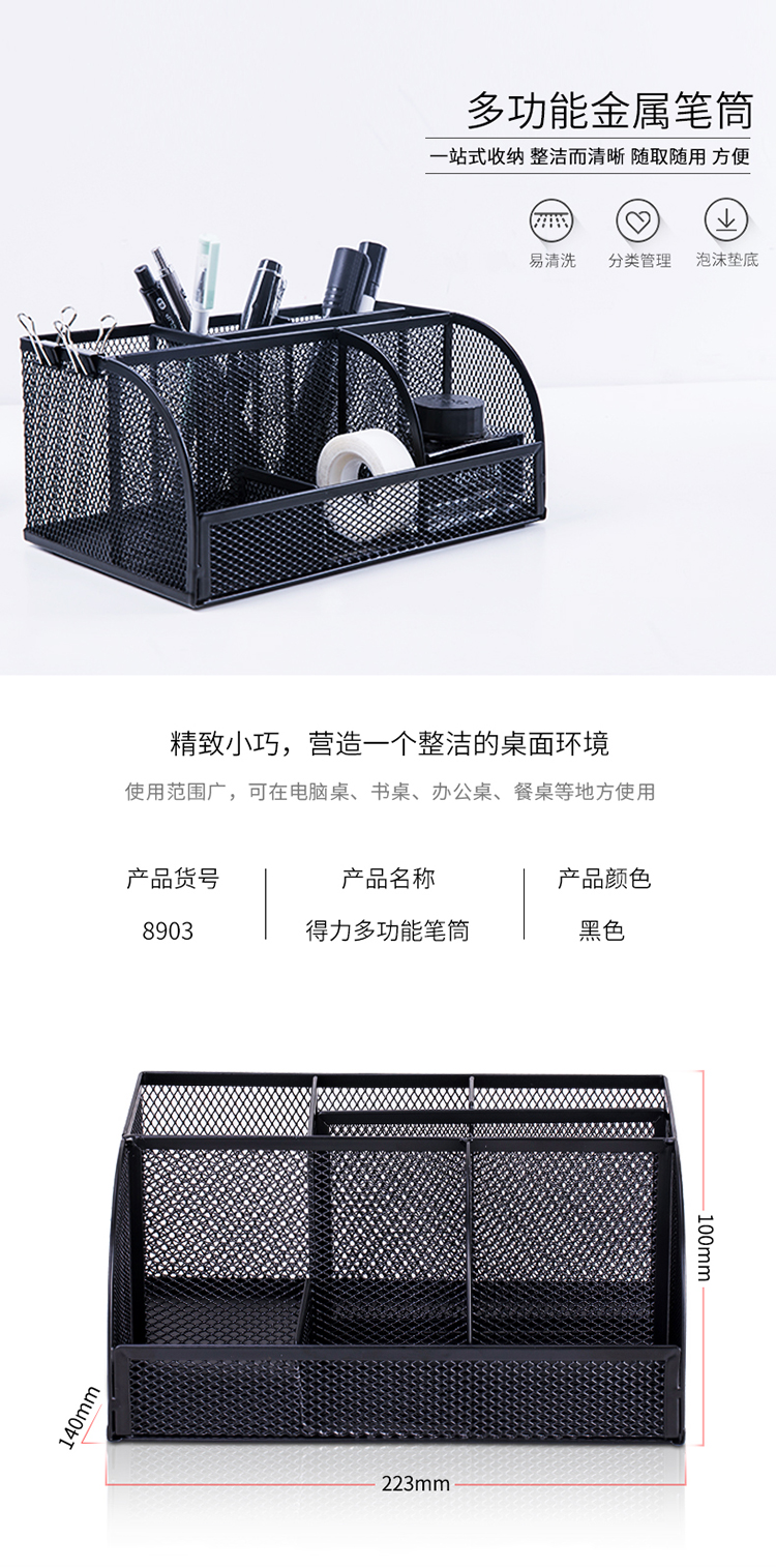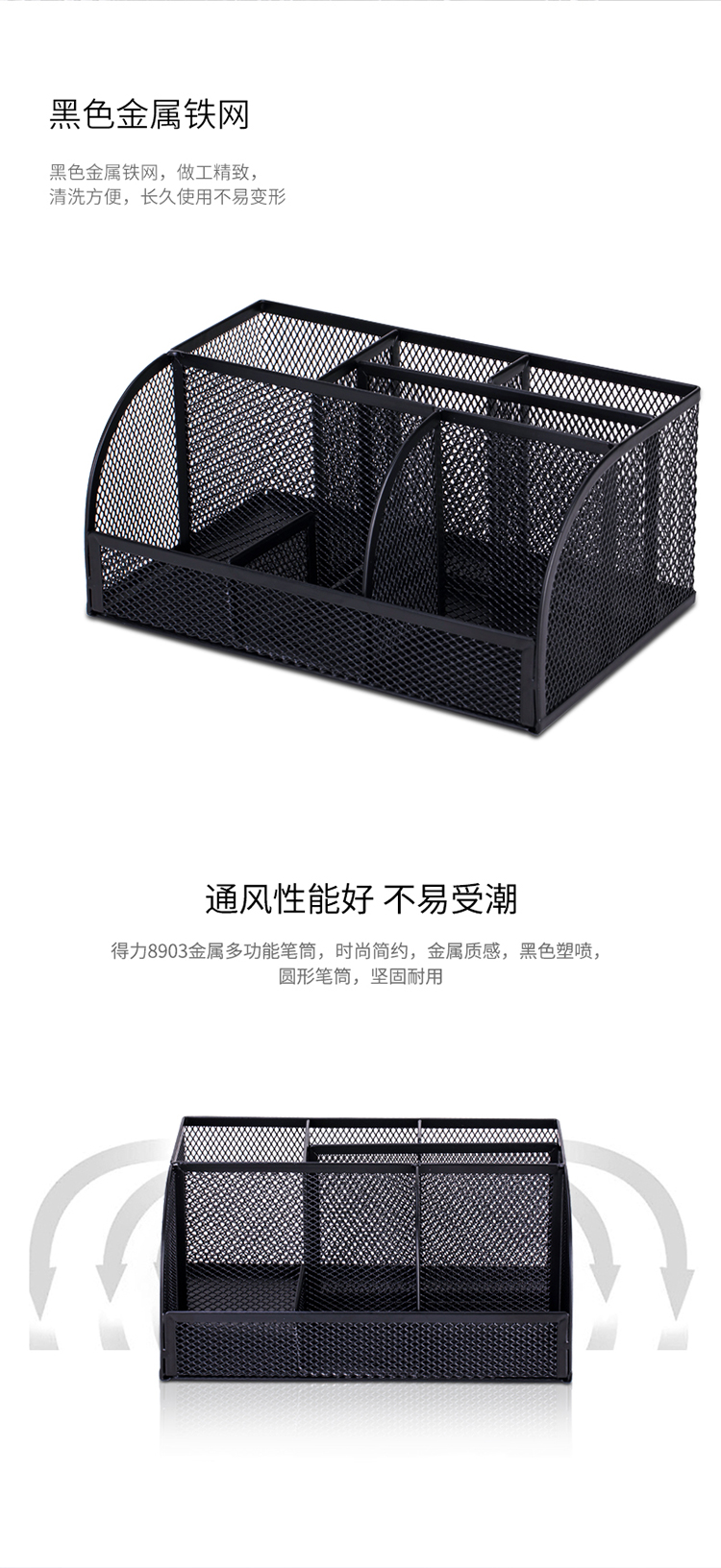• 商品名稱:得力(deli)多功能組合辦公筆筒 金屬網(wǎng)紋桌面收納盒 黑色8903