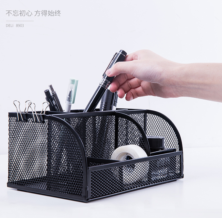 • 得力(deli)多功能組合辦公筆筒 金屬網(wǎng)紋桌面收納盒 黑色8903