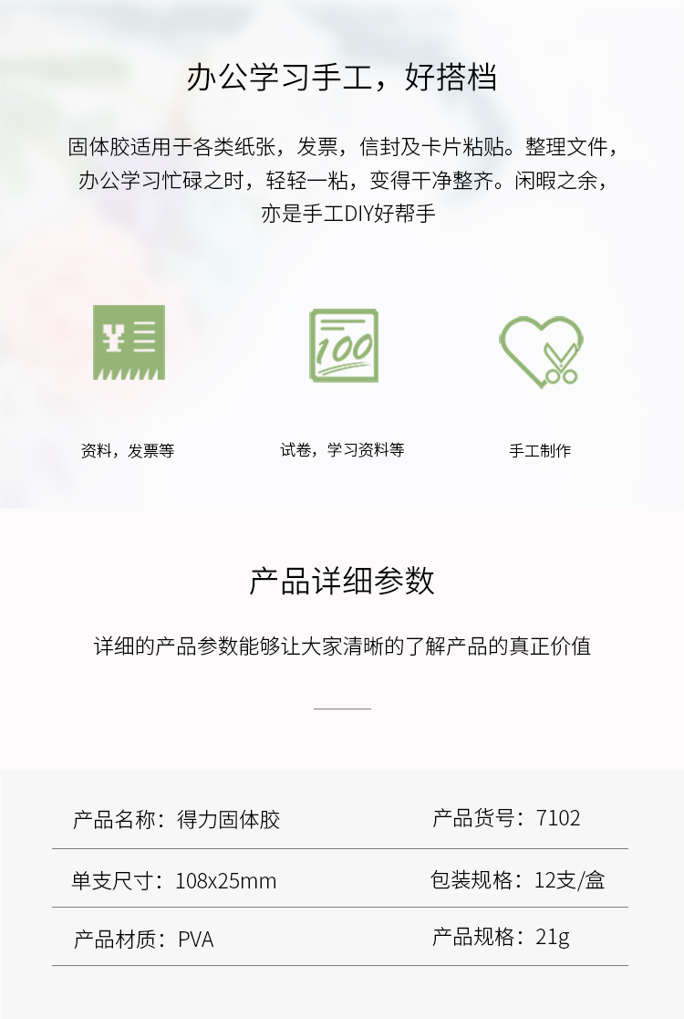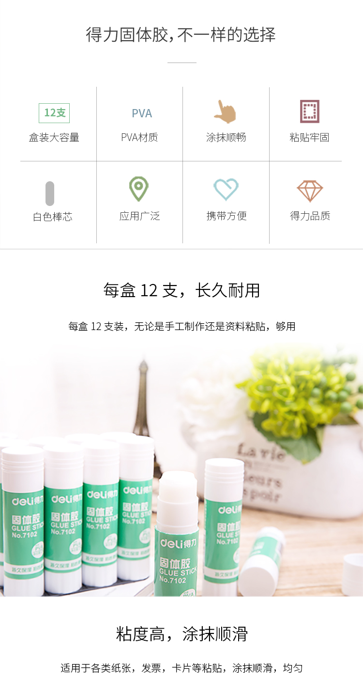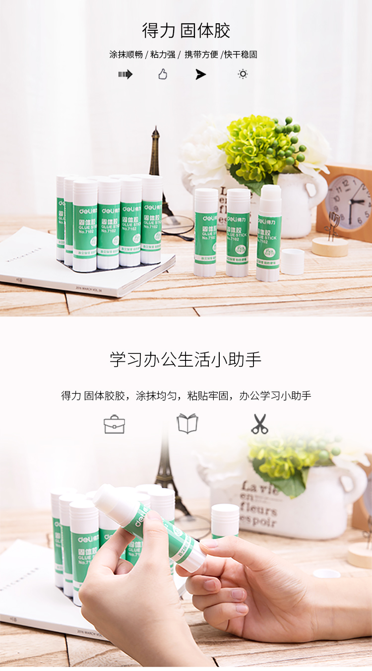 • 商品名稱:得力(deli) 7102 PVA材質(zhì)固體膠棒21g 12支/盒