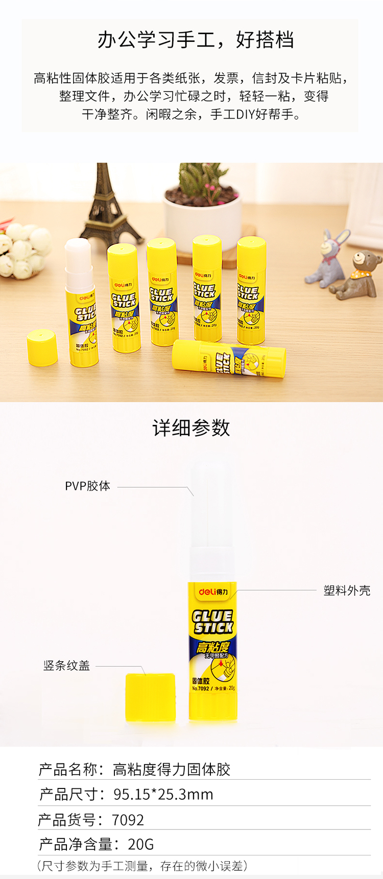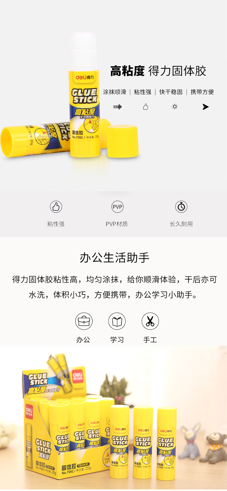 • 商品名稱:得力(deli)20g高粘度PVP固體膠水 快干耐用膠棒 12支裝 7092