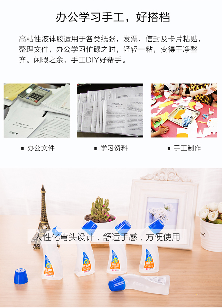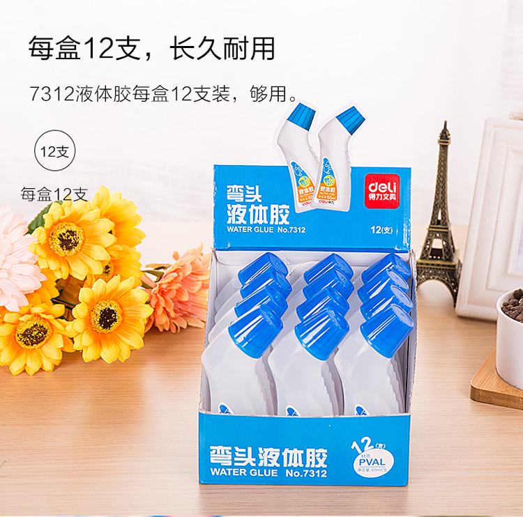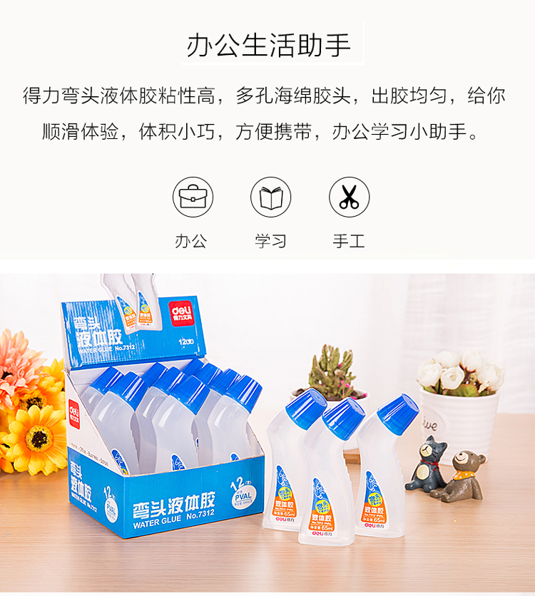 • 得力(deli)65ml高粘度彎頭液體膠水 12只裝 藍(lán)色7312