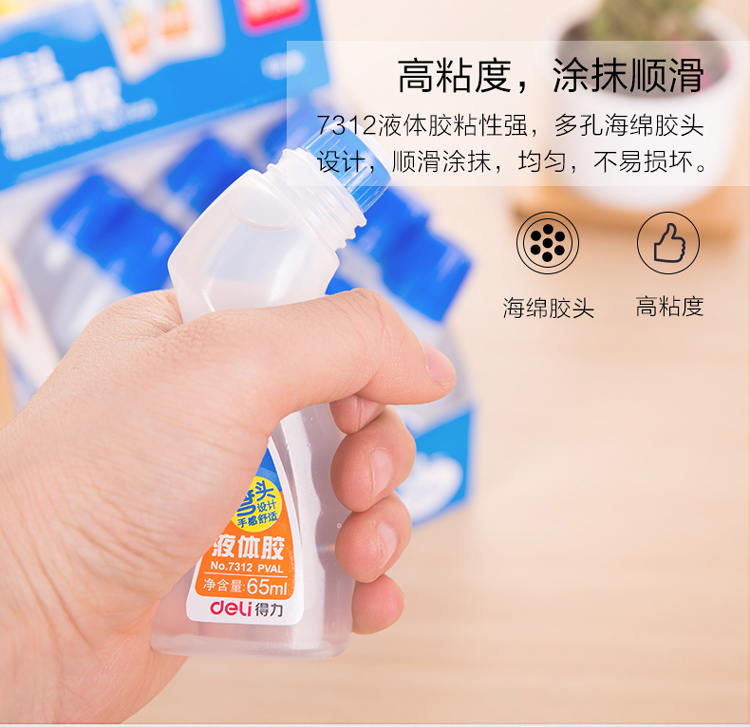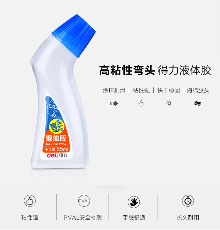 • 商品名稱:得力(deli)65ml高粘度彎頭液體膠水 12只裝 藍(lán)色7312