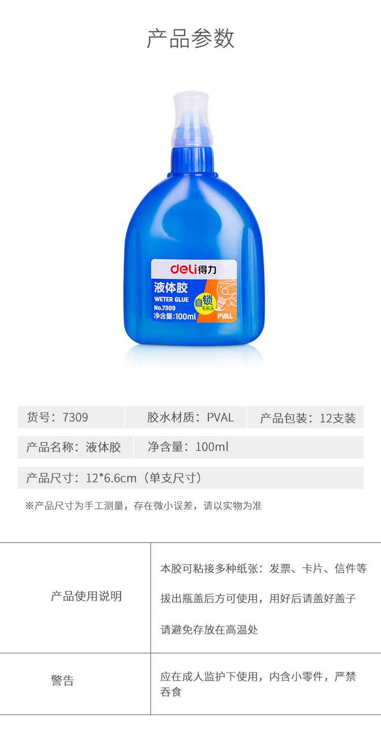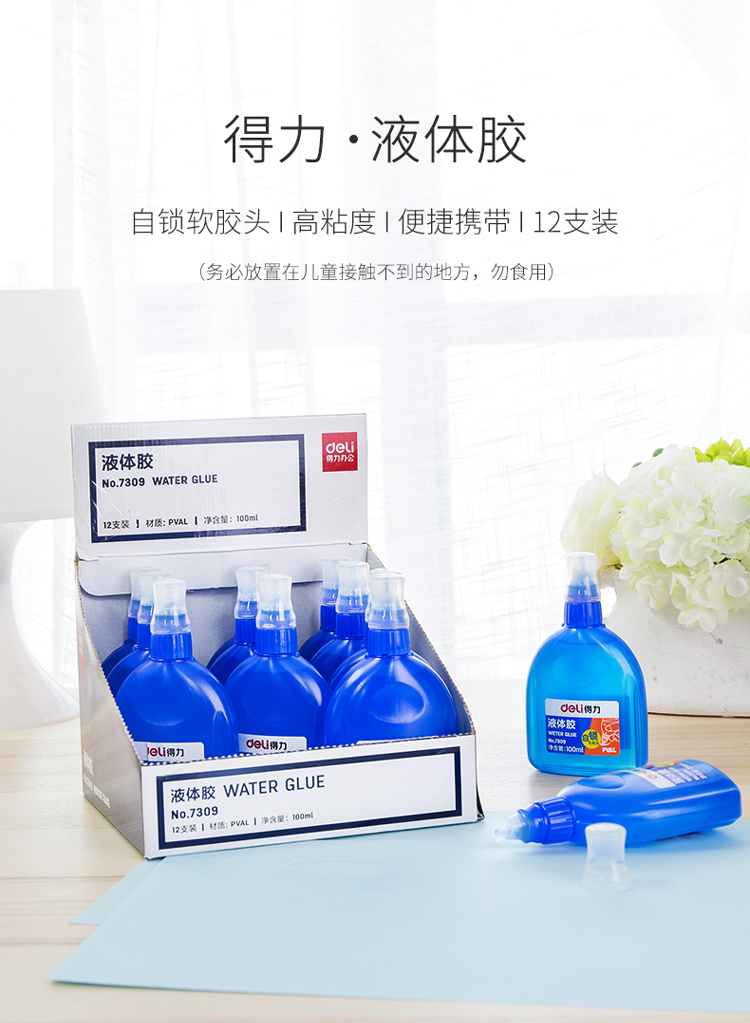 • 商品名稱:得力(deli)12支100ml大容量液體膠 帶刷頭膠水 藍(lán)色7309