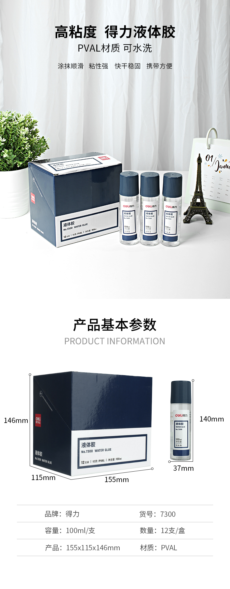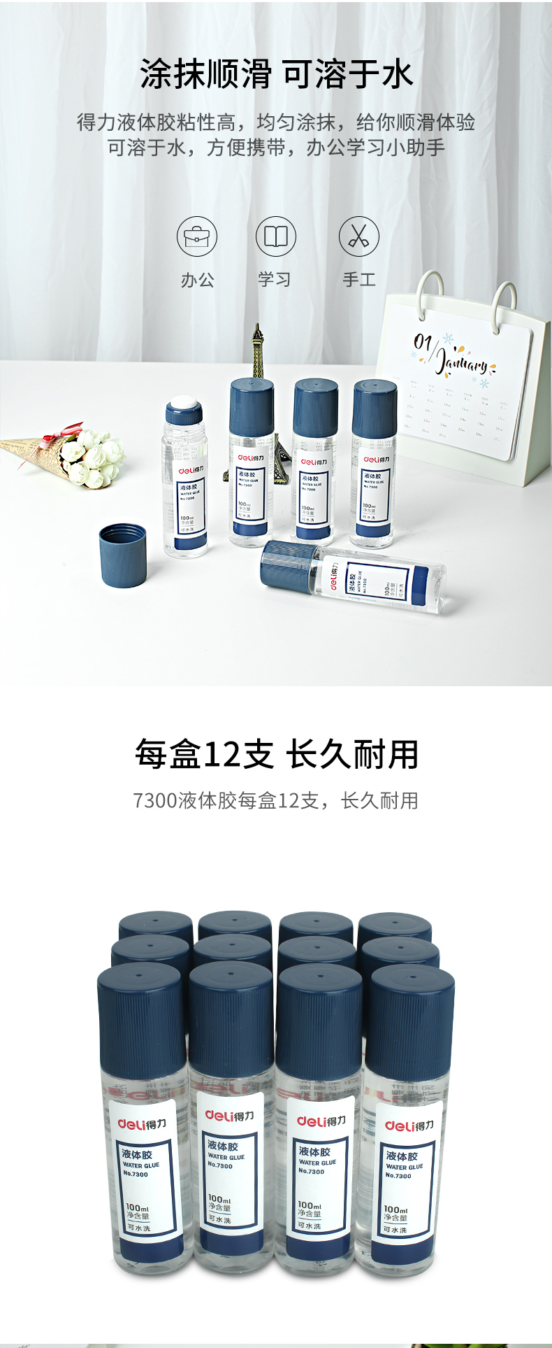 • 商品名稱:得力(deli)100ml高透可水洗液體膠水 12支裝 7300