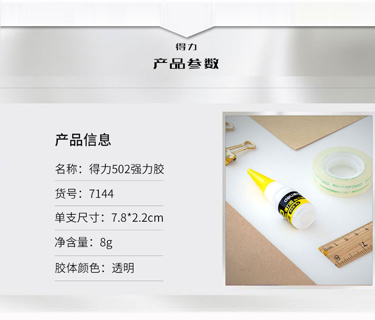 • 商品名稱:得力(deli)8g502強(qiáng)力膠水 粘合無色膠水 1支裝 7144
