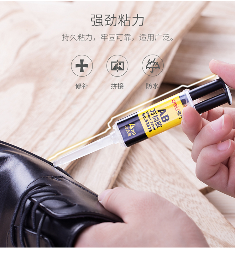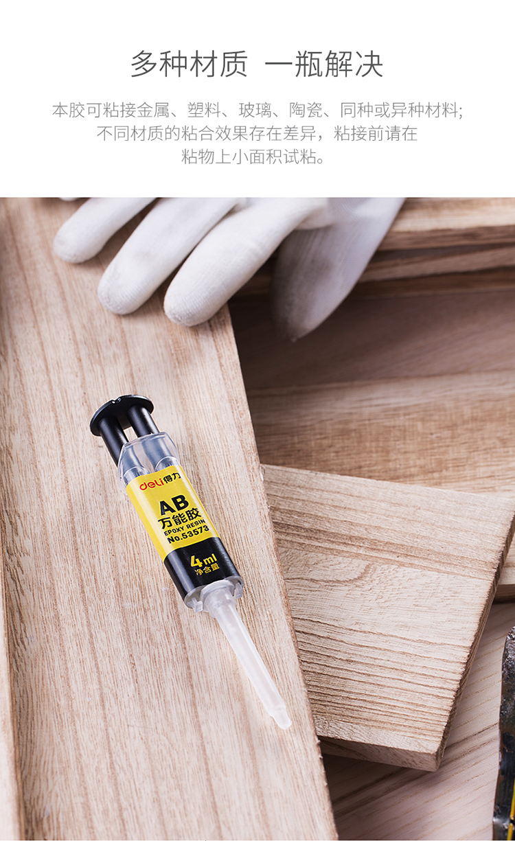 • 商品名稱:得力(deli)4ml針管型AB膠 自動混合強力型膠(可粘金屬陶瓷) 53573