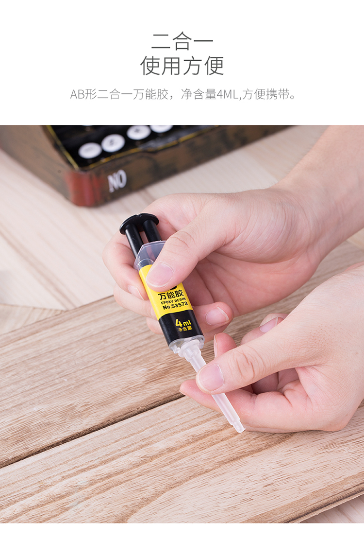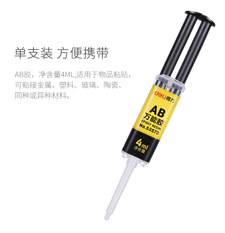• 得力(deli)4ml針管型AB膠 自動混合強力型膠(可粘金屬陶瓷) 53573