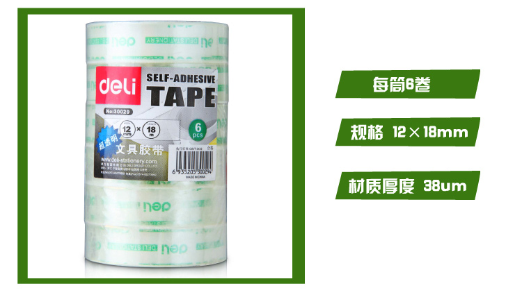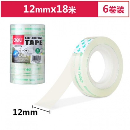 • 得力(deli)透明高粘易撕文具膠帶/小膠帶 12mm*18m 6卷/筒裝 30029 單支裝
