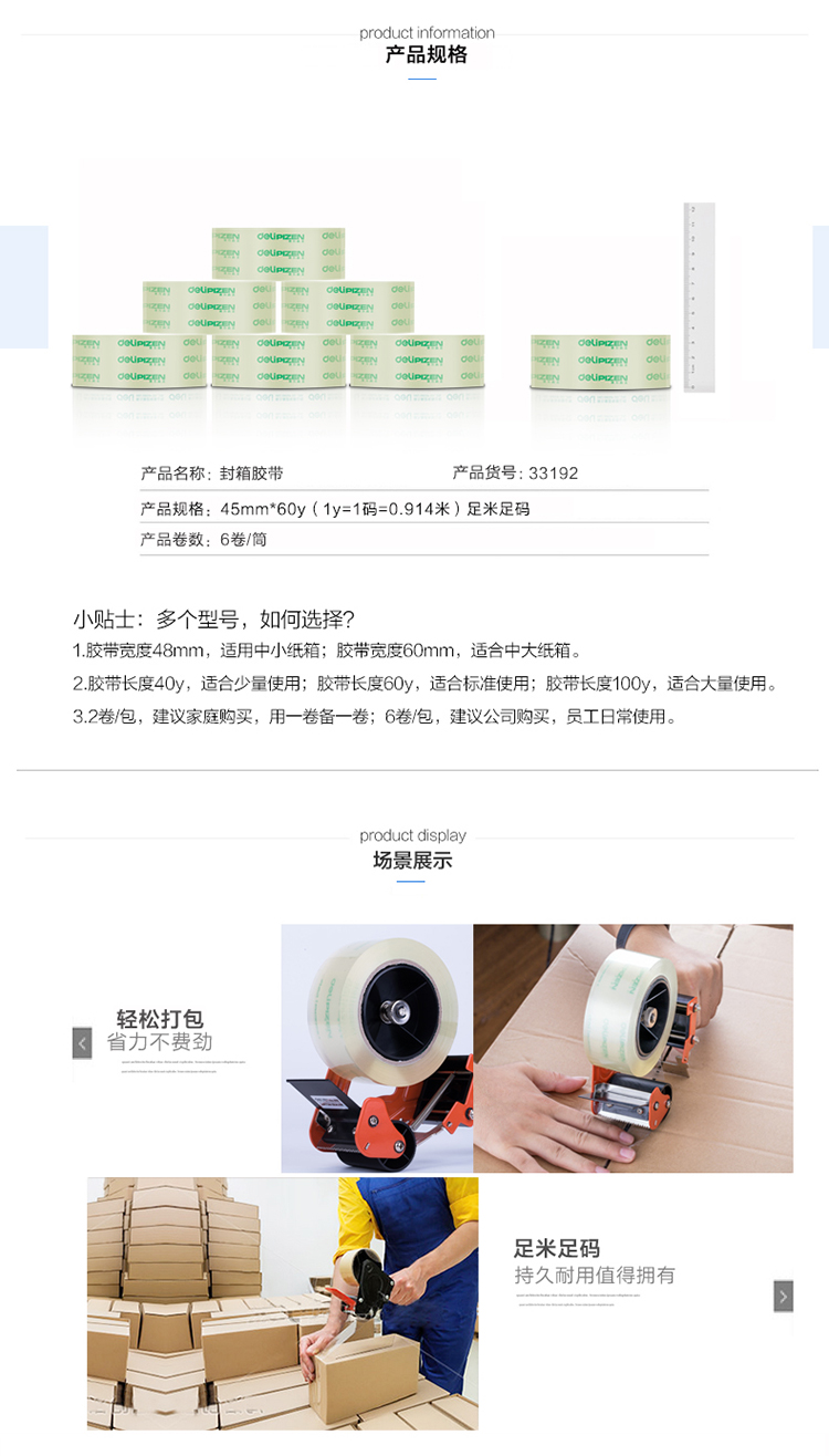 • 商品名稱:得力(deli)高品質(zhì)高透明封箱膠帶打包膠帶45mm*60m*50um 6卷/筒 33192