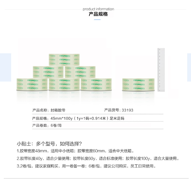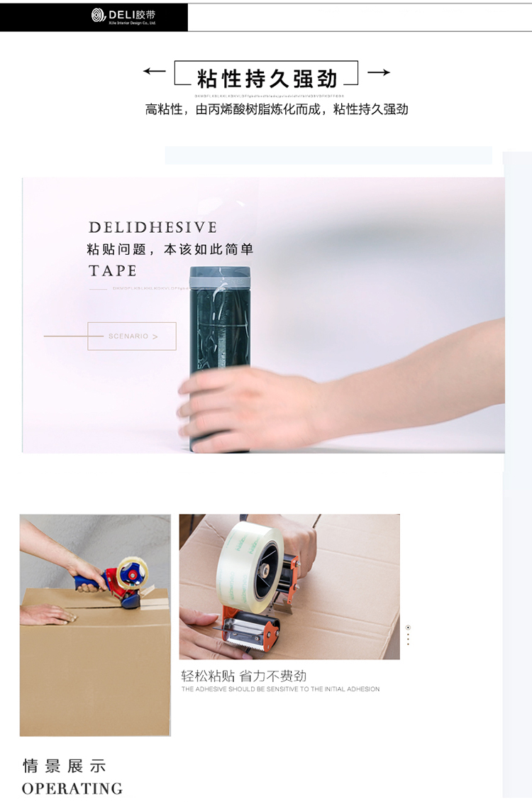 • 得力(deli)高品質(zhì)高透明封箱膠帶打包膠帶45mm*100m*50um 6卷/筒 33193