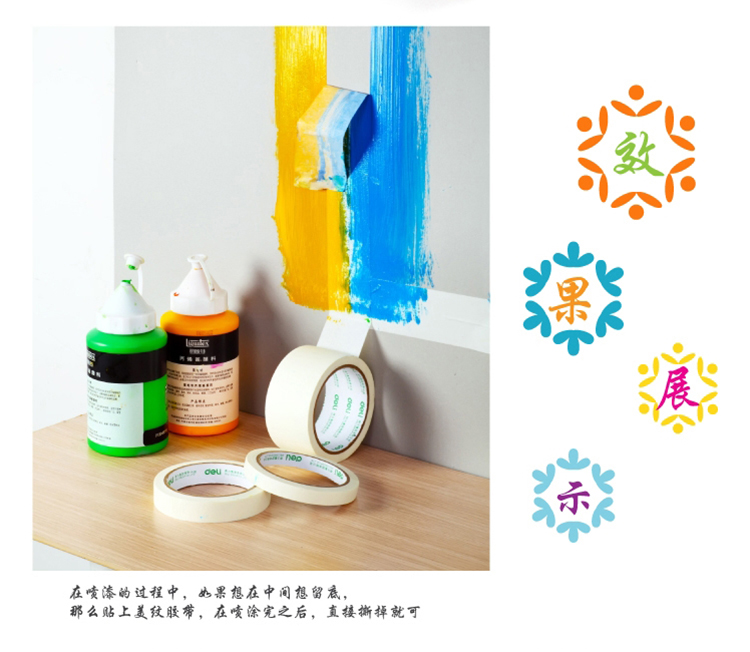 • 得力(deli)美紋紙膠帶/裝修遮蔽帶/無痕紙/貼膜 36mm*20y*145um(18.3m/卷) 1卷裝 30672