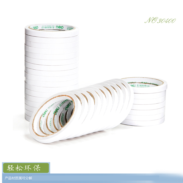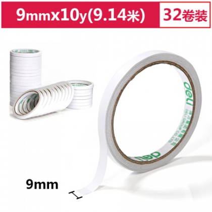 • 得力(deli)高粘性棉紙雙面膠帶 9mm*10y(9.1m/卷) 32卷袋裝 30400
