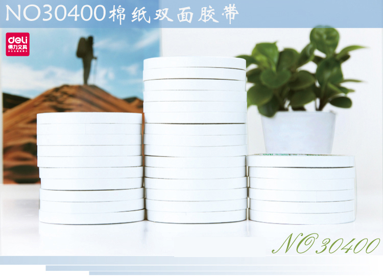 • 商品名稱:得力(deli)高粘性棉紙雙面膠帶 9mm*10y(9.1m/卷) 32卷袋裝 30400