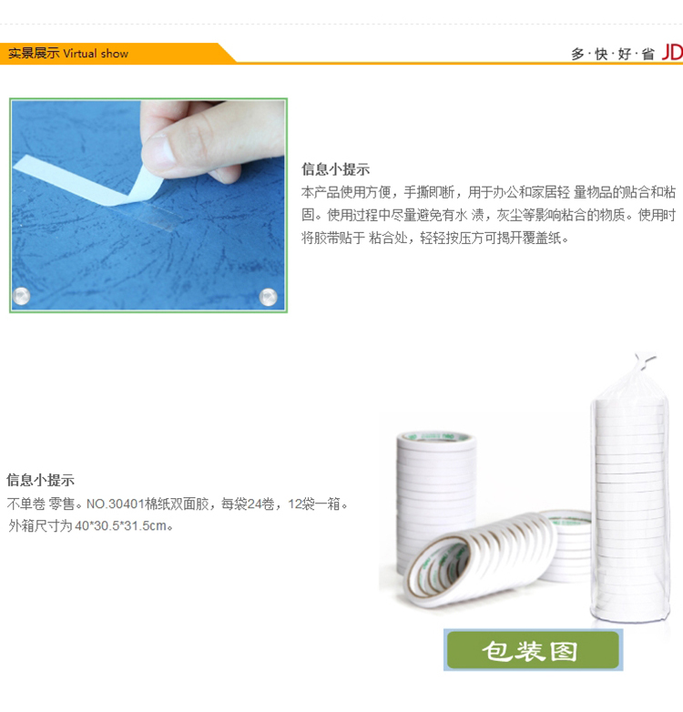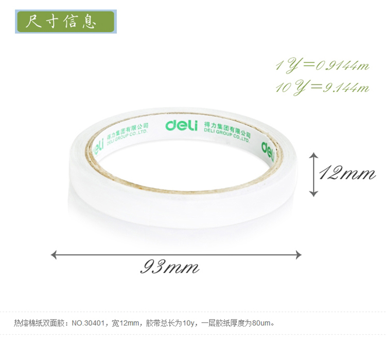 • 商品名稱:得力(deli)高粘性棉紙雙面膠帶12mm*10y(9.1m/卷) 24卷/袋裝 30401