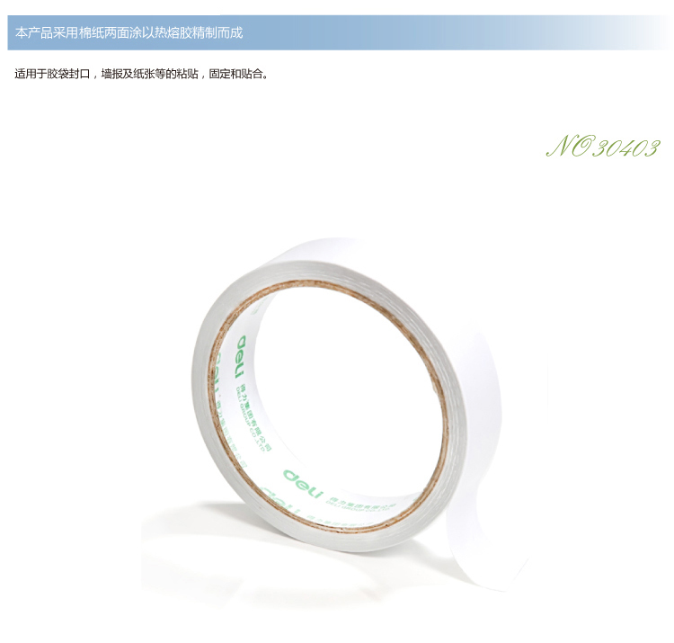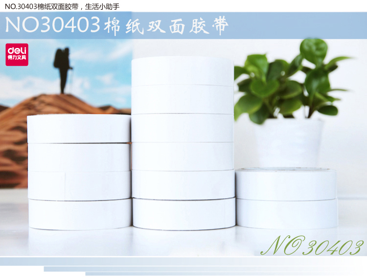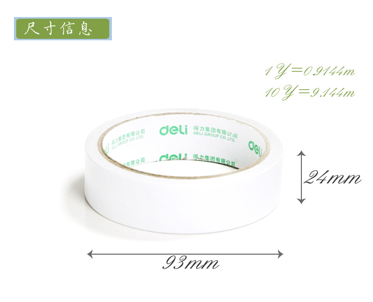 • 商品名稱:得力(deli)高粘性棉紙雙面膠帶24mm*10y(9.1m/卷) 12卷袋裝 30403