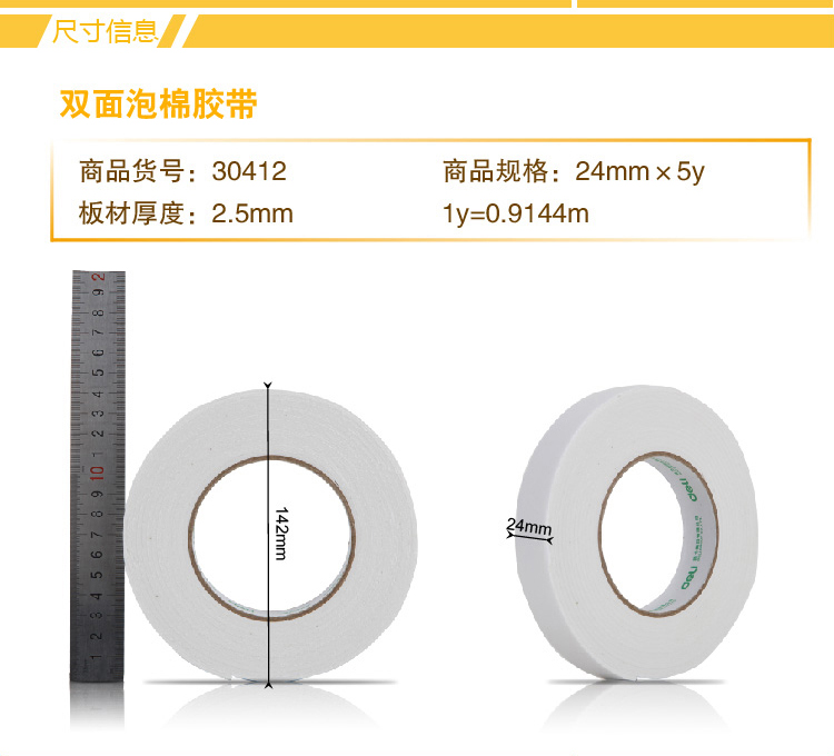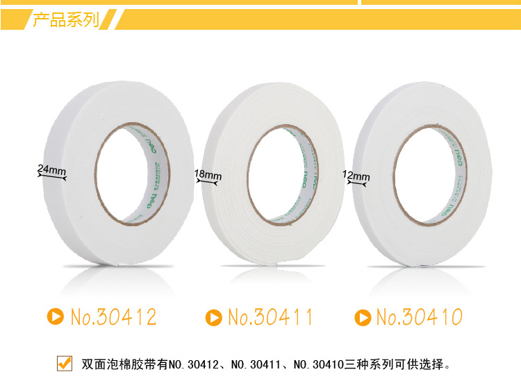 • 商品名稱:得力(deli)強(qiáng)力高粘度EVA泡棉雙面膠帶 24mm*5y*2.5mm 12卷袋裝 白色30412