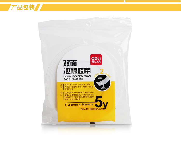 • 得力(deli)強(qiáng)力高粘度EVA泡棉雙面膠帶 24mm*5y*2.5mm 12卷袋裝 白色30412