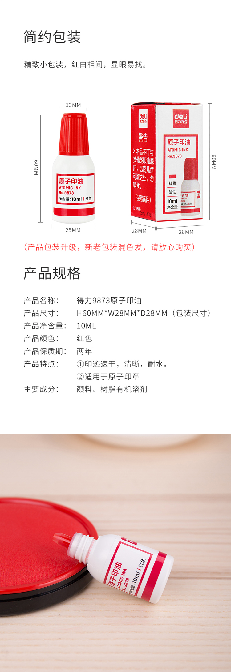 • 商品名稱:得力(deli) 紅色原子印章油 9873
