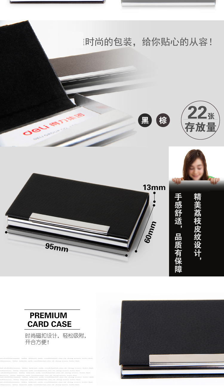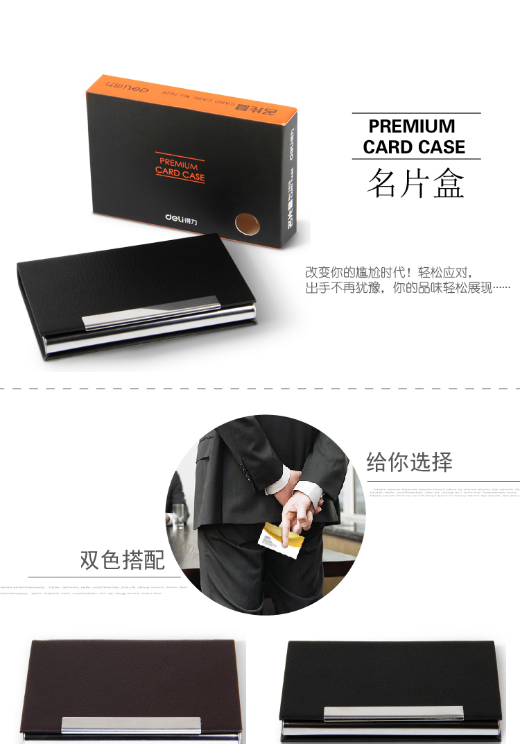 • 商品名稱:得力(deli)便攜商務名片盒 男女辦公皮面名片夾 顏色隨機7628