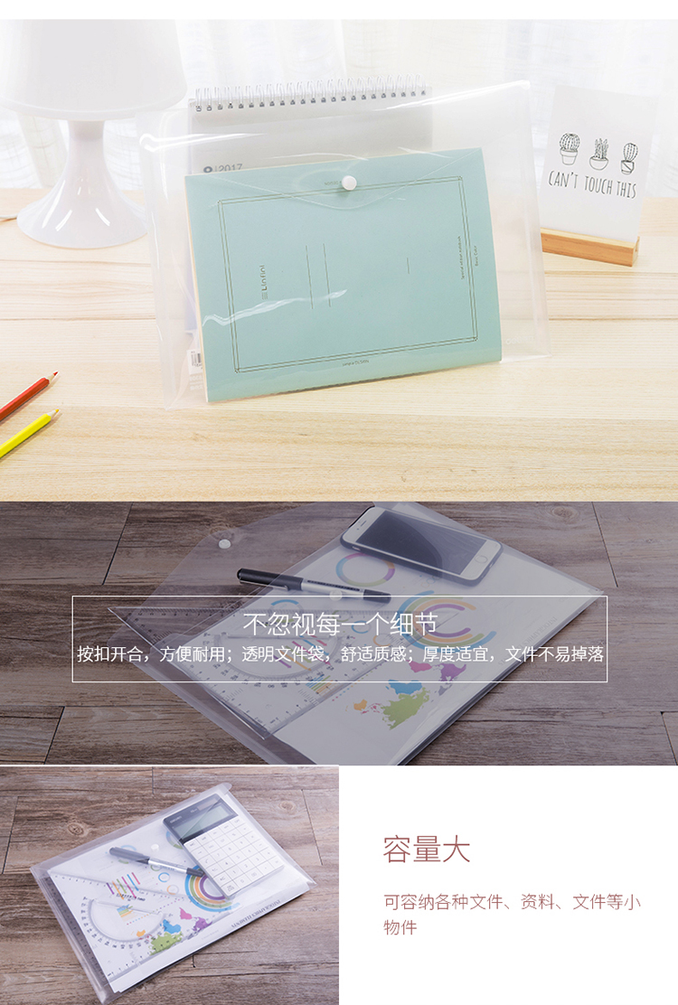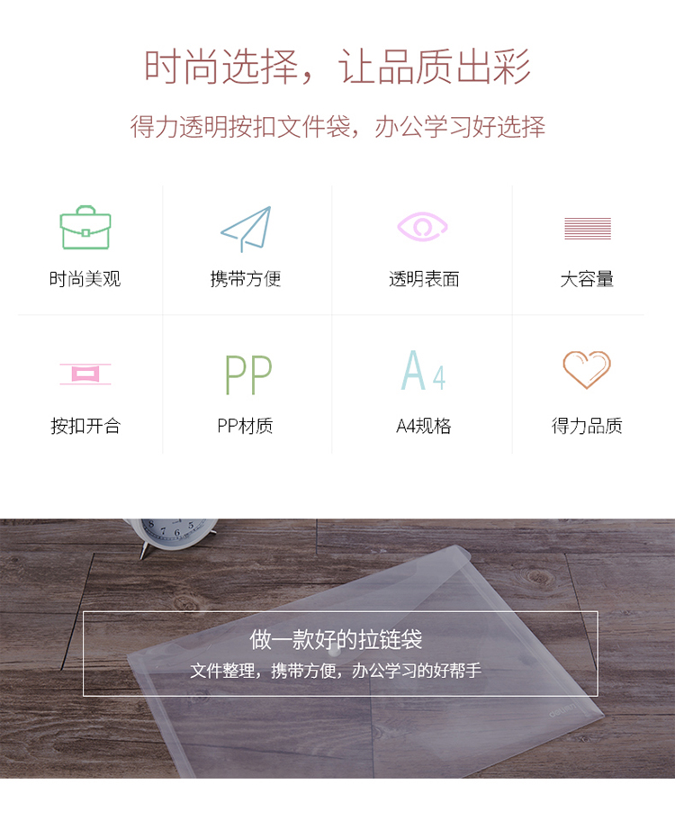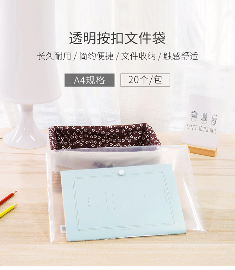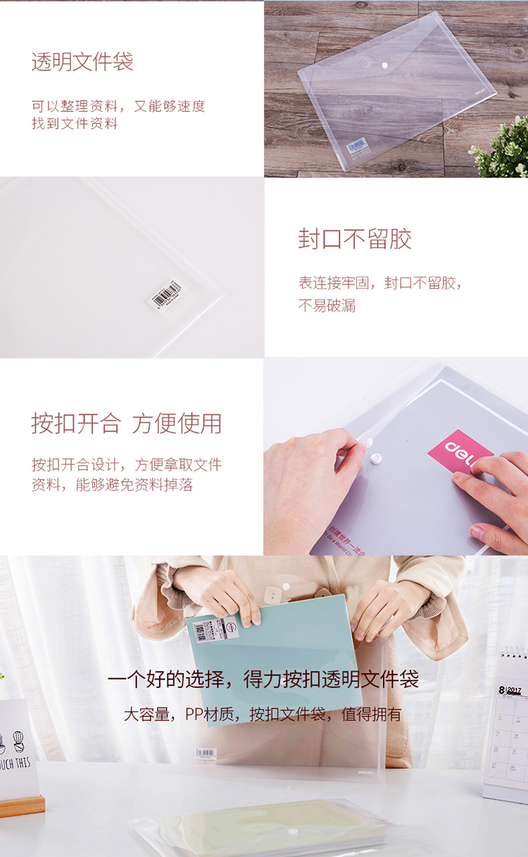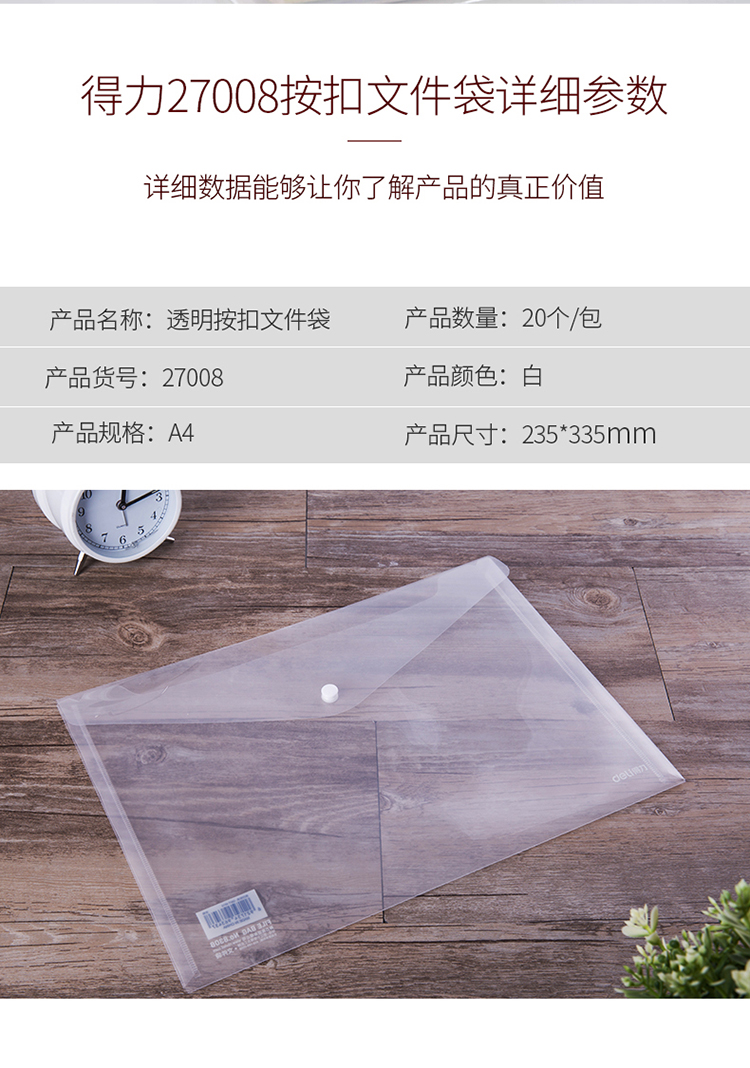 • 商品名稱:得力(deli)20只裝A4透明按扣文件袋資料袋檔案袋 27008