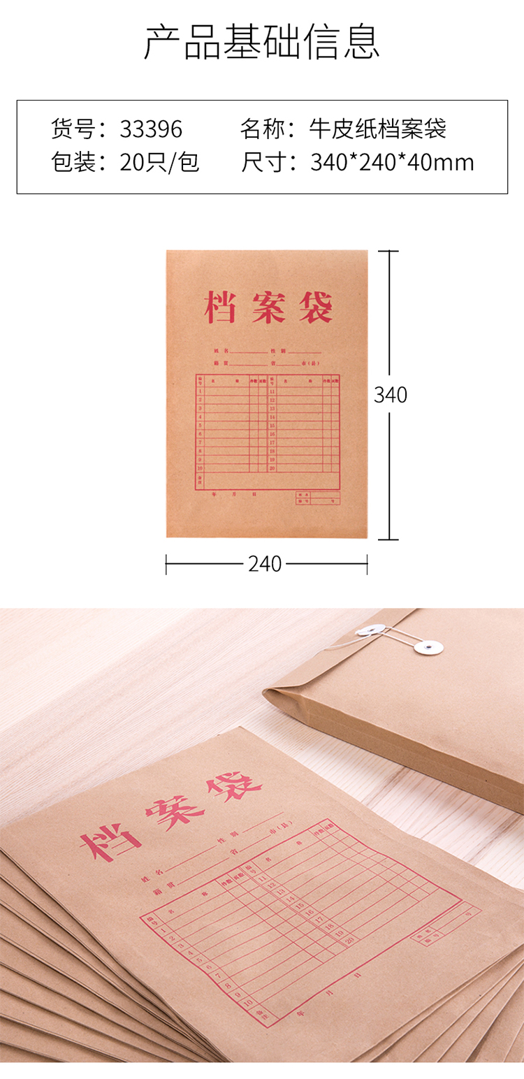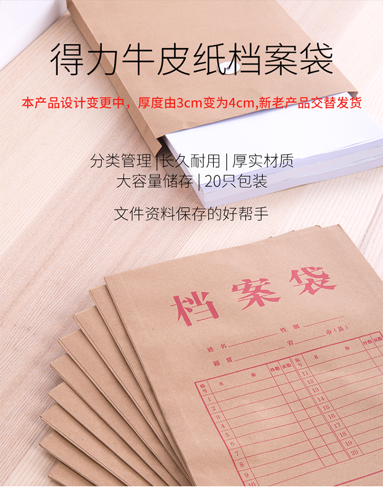 • 商品名稱:得力(deli) 20只A4牛皮紙檔案袋 175g側寬4cm文件袋資料袋 33396