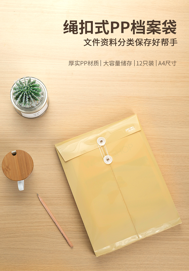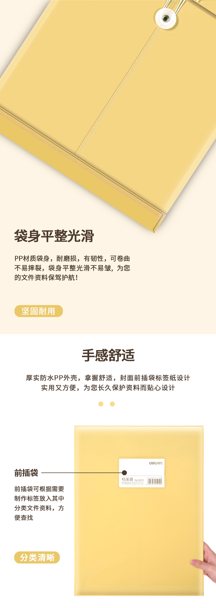 • 得力(deli)12只A4防水檔案袋 PP材質(zhì)耐折文件袋 復(fù)古黃5910