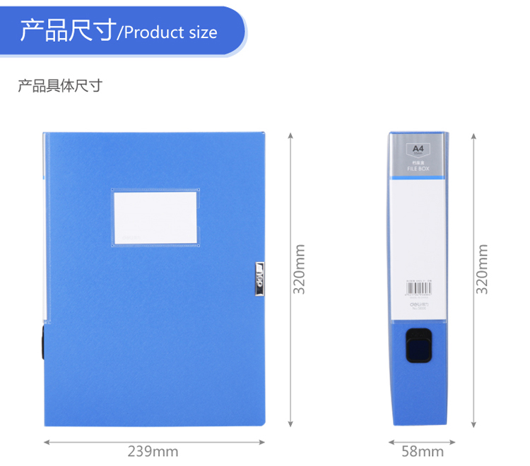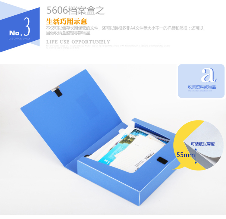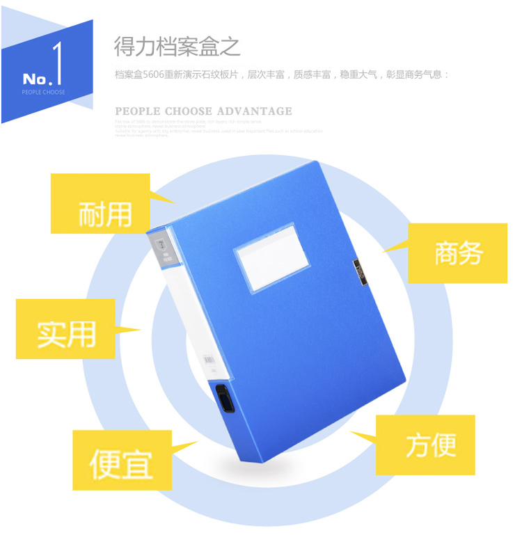• 商品名稱:得力(deli) 5606 睿商系列加厚PP粘扣檔案盒 A4 55mm 藍色 12只裝