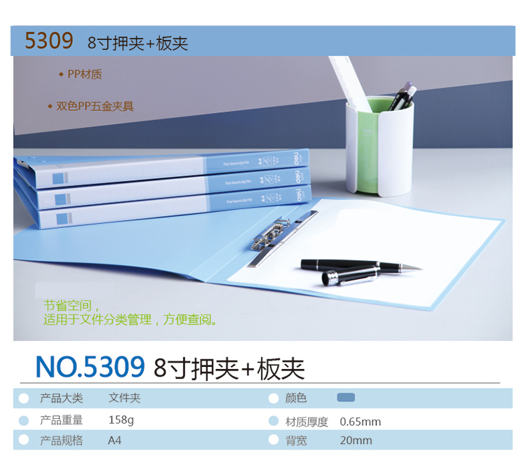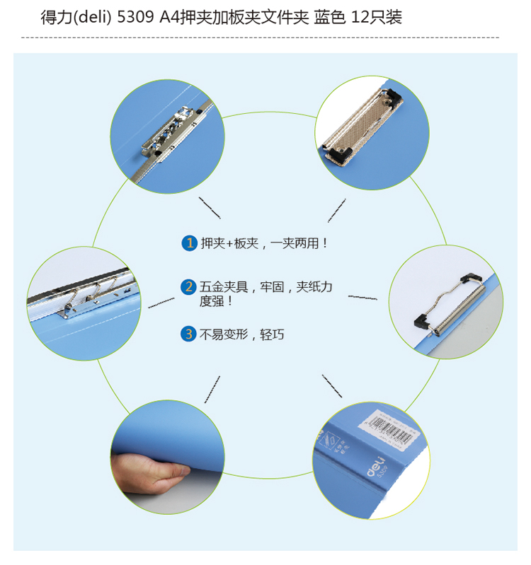 • 商品名稱:得力(deli) 5309 A4金屬長押夾加板夾文件夾 藍(lán)色 12只裝