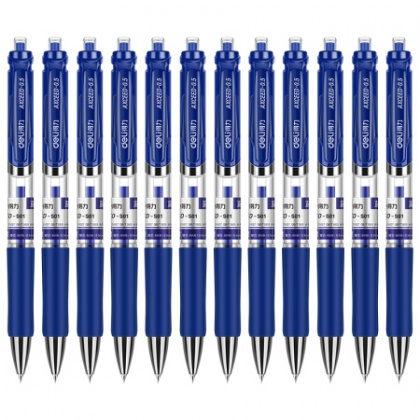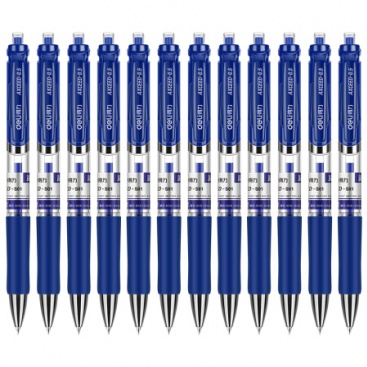 • 得力(deli)S01藍色0.5mm按動中性筆水筆經(jīng)典辦公簽字筆 子彈頭12支/盒