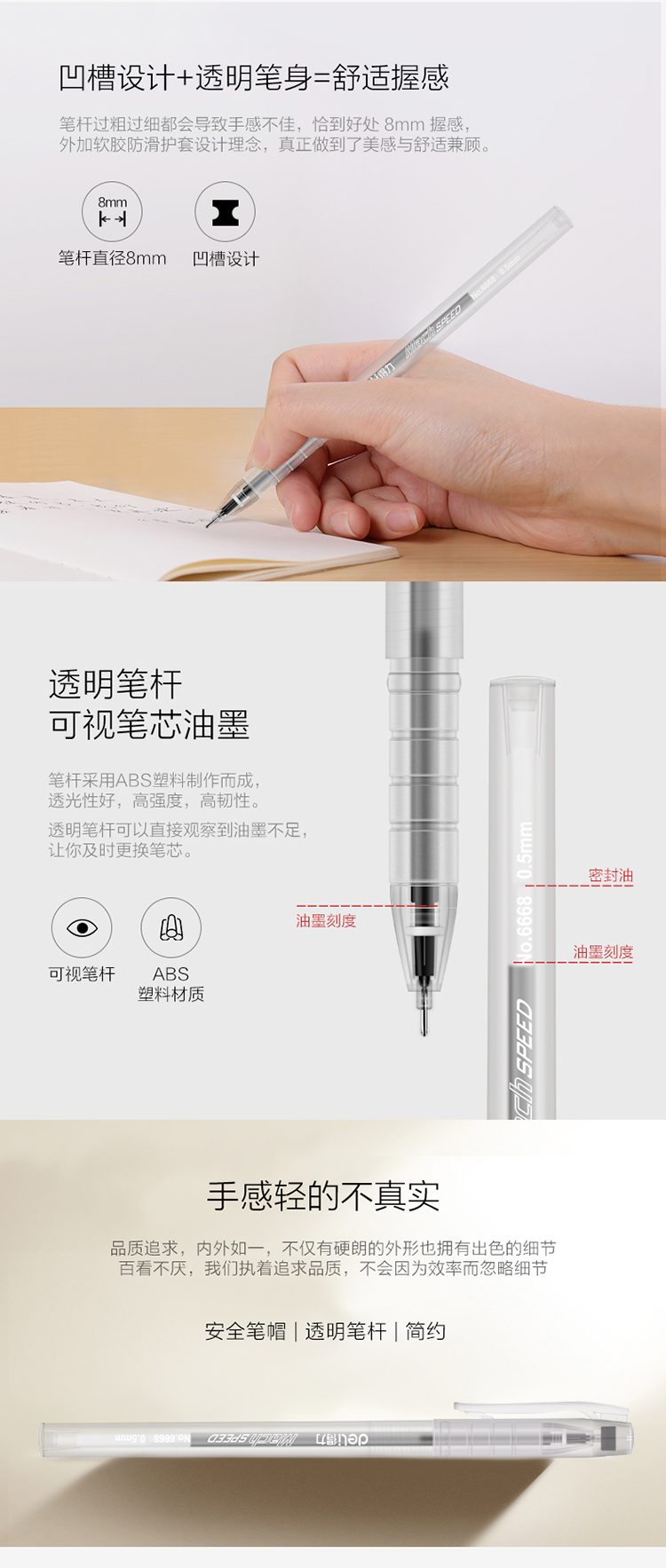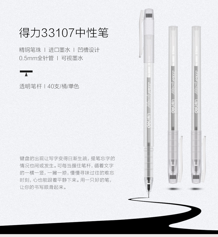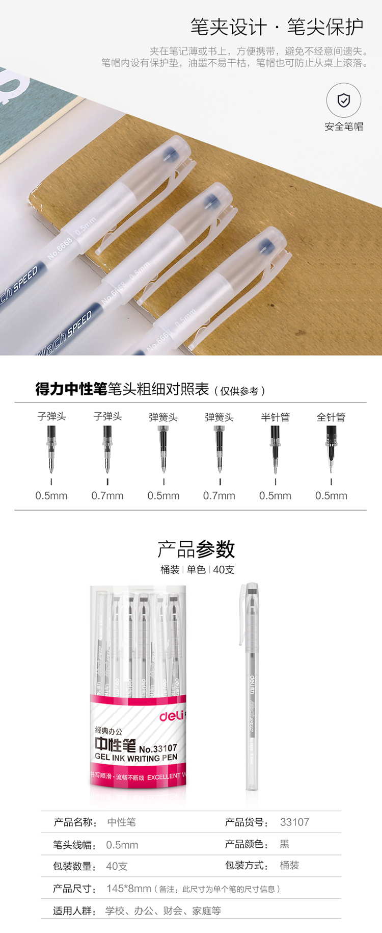 • 商品名稱:得力(deli)0.5mm全針管黑色中性筆水筆簽字筆 40支/桶33107