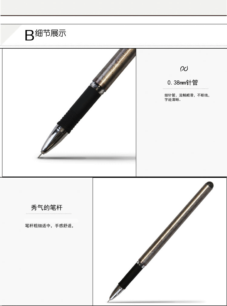 • 商品名稱:得力(deli)0.38mm黑色全針管財務中性筆 優(yōu)雅十字紋細桿12支/盒 S43