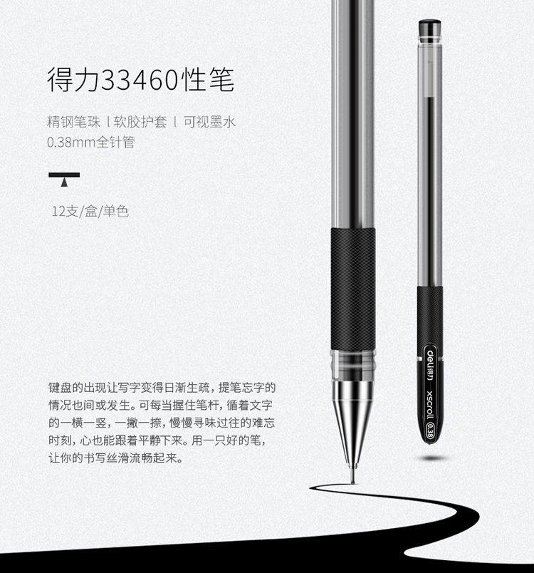 • 商品名稱:得力(deli)0.38mm全針管中性水性簽字筆 黑色12支/盒33460