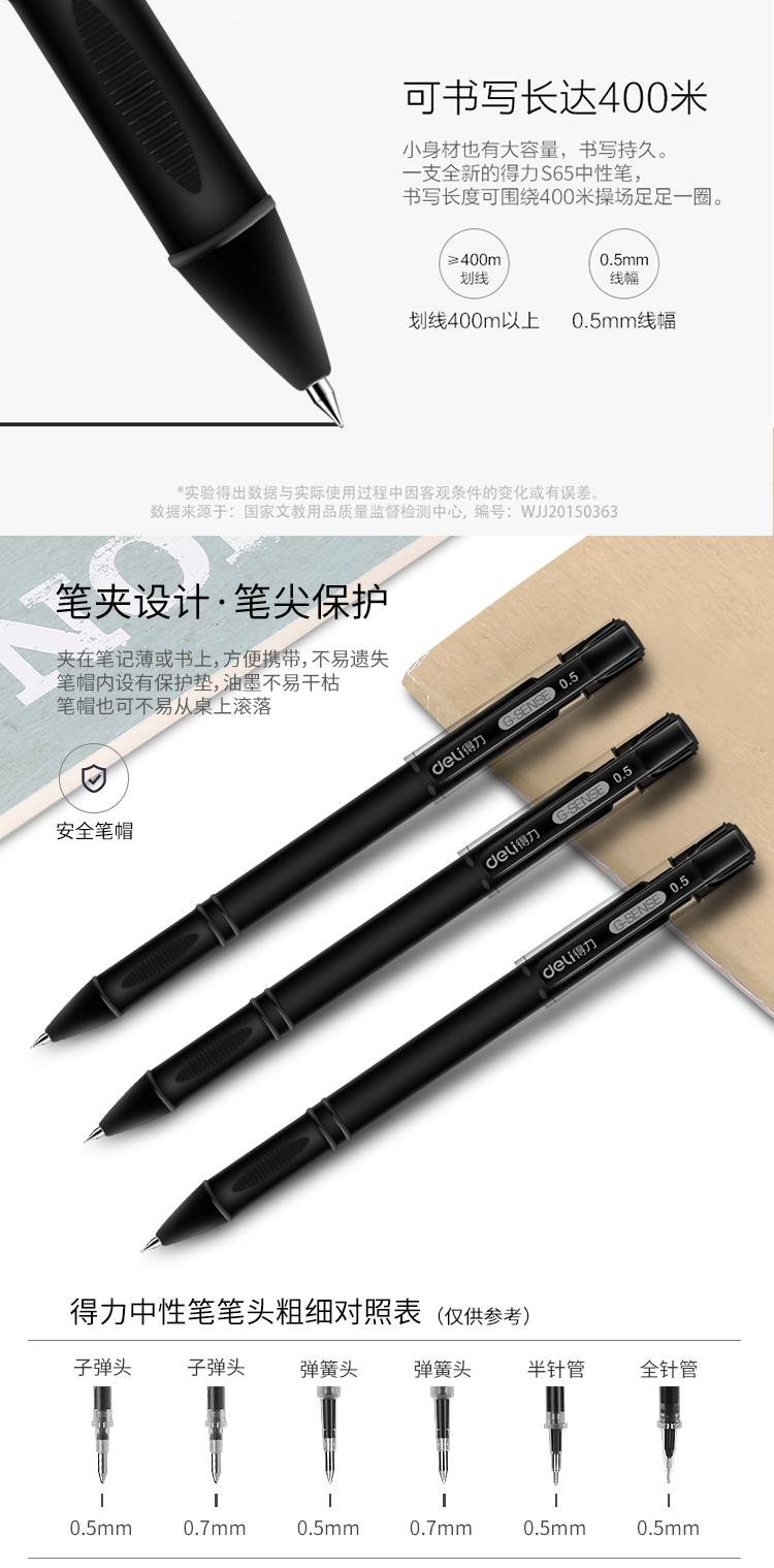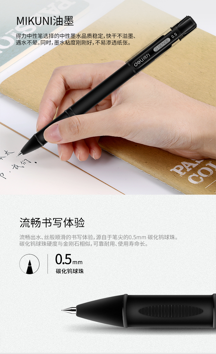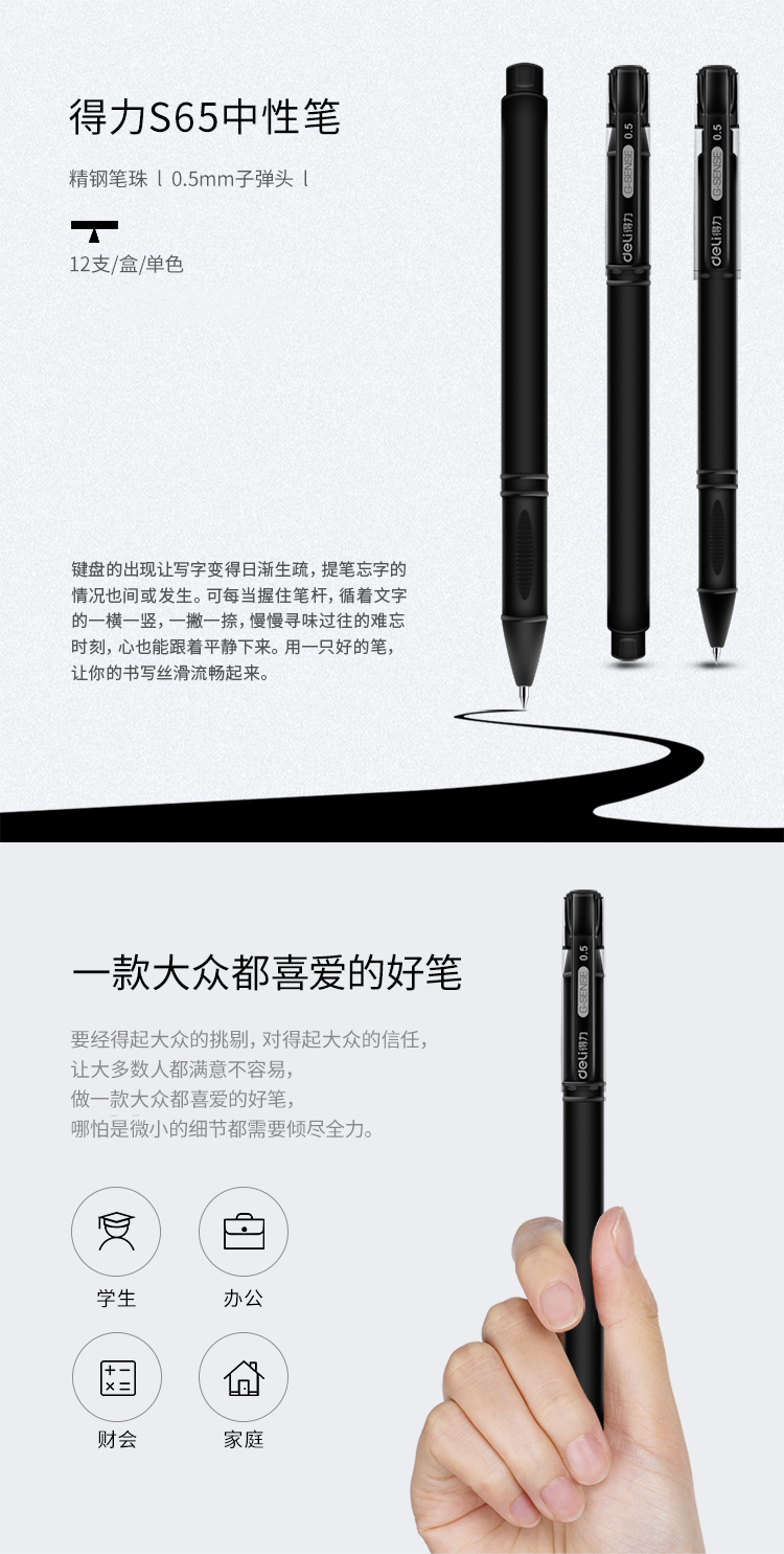 • 商品名稱:得力(deli)0.5mm黑色中性筆水筆簽字筆 子彈頭磨砂桿12支/盒DL-S65