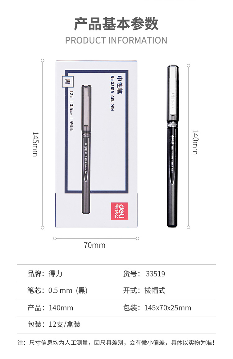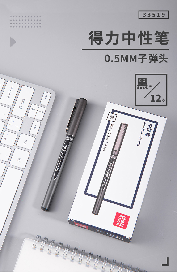 • 商品名稱:得力(deli)0.5mm子彈頭中性筆簽字水筆會議筆 12支/盒 33519