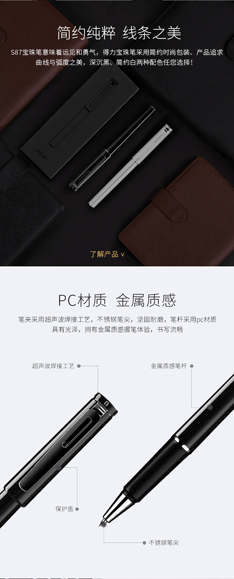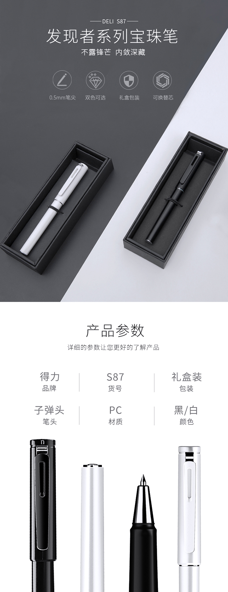 • 商品名稱:得力(deli)發(fā)現(xiàn)者寶珠筆會(huì)議簽字中性筆 典雅黑 S87