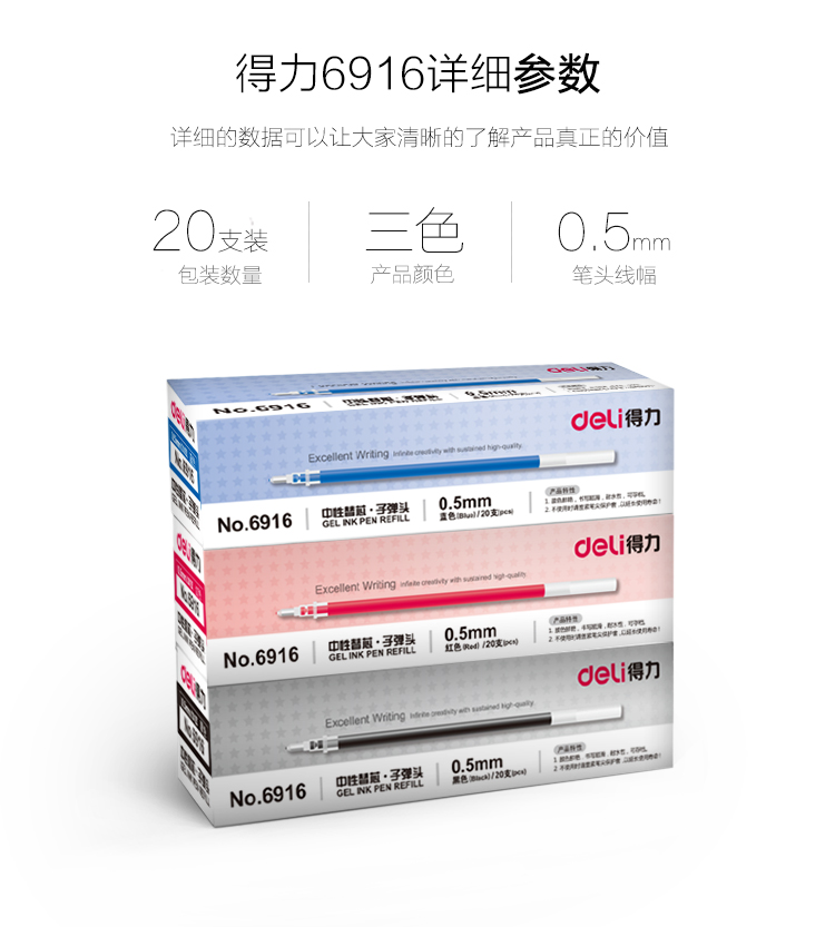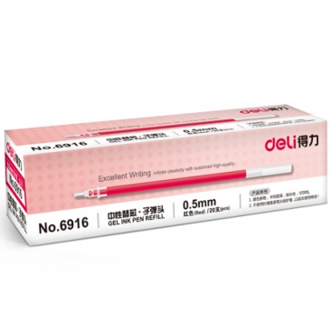 • 商品名稱:得力(deli)0.5mm紅色中性筆筆芯 子彈頭水筆簽字筆替芯 20支/盒6916