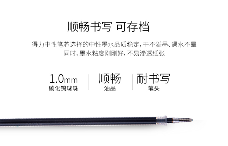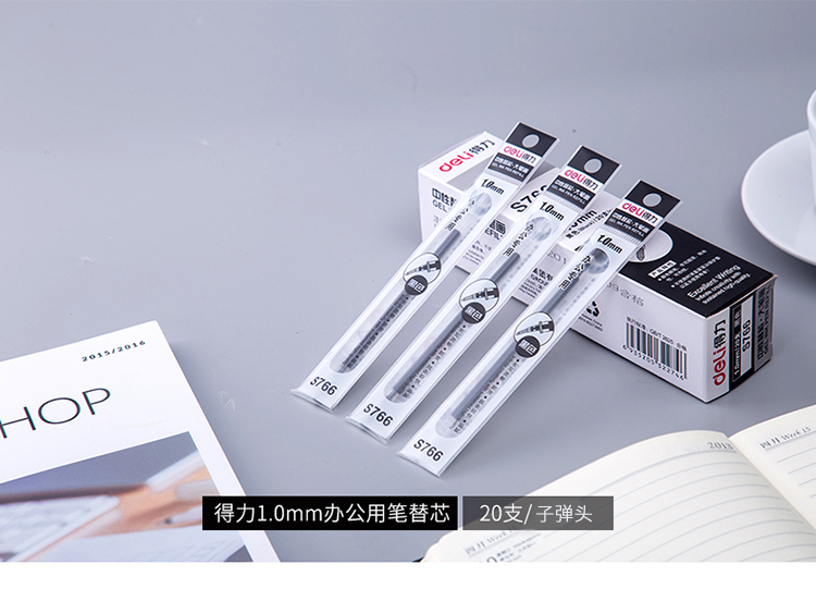 • 商品名稱:得力(deli)1.0mm黑色中性筆簽字筆替芯 子彈頭20支/盒S766