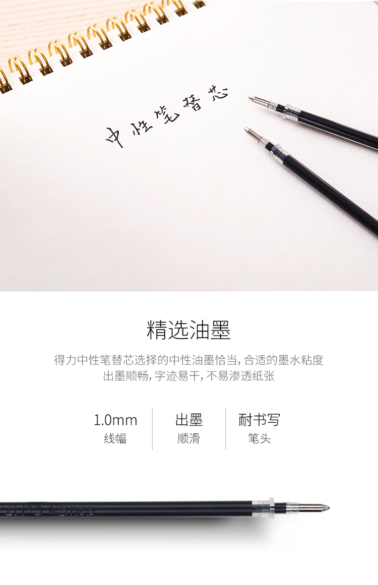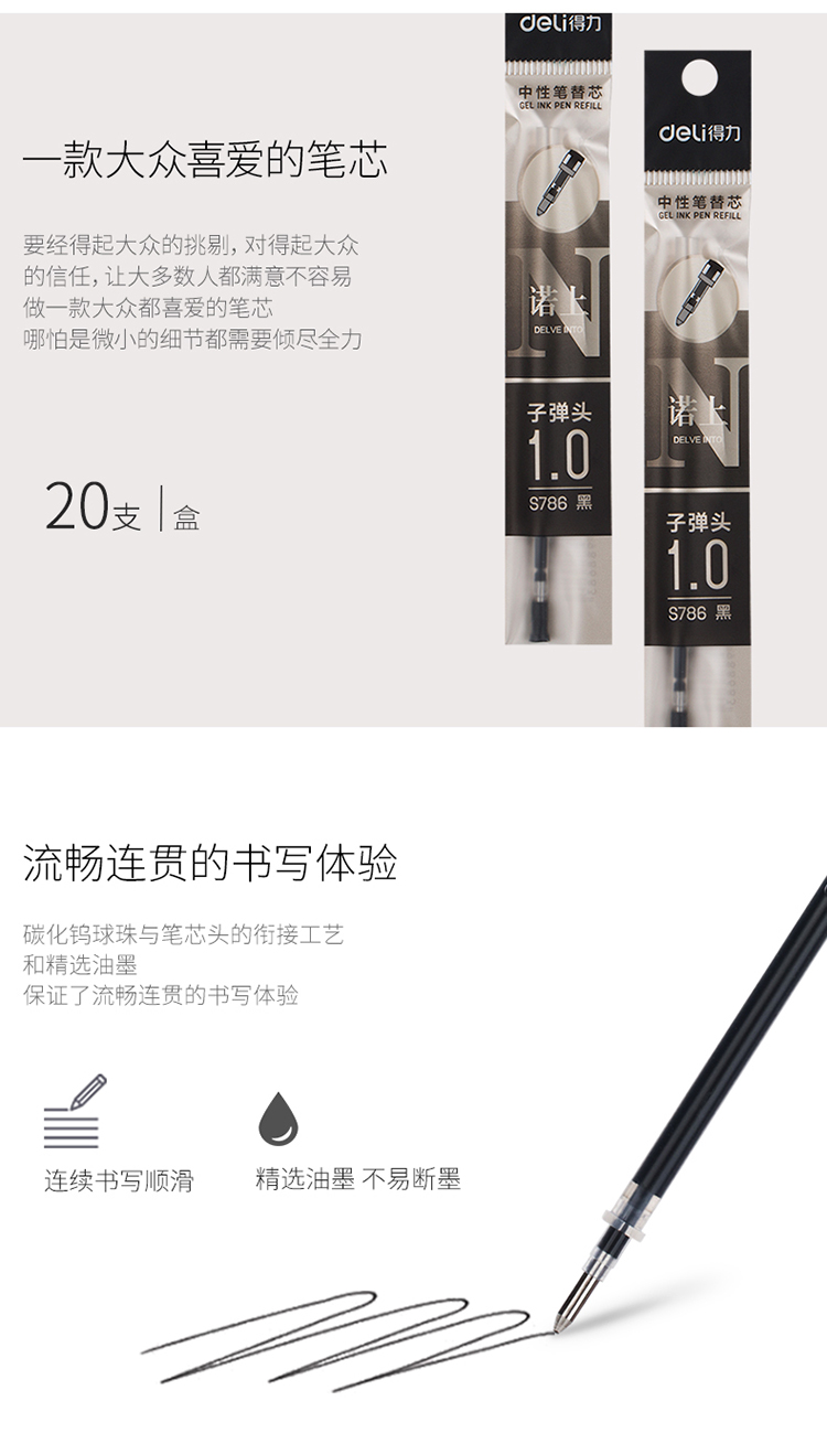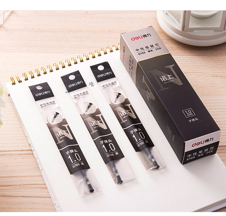 • 商品名稱:得力(deli)諾上1.0mm黑色中性筆筆芯 子彈頭水性簽字筆替芯 20支/盒S786