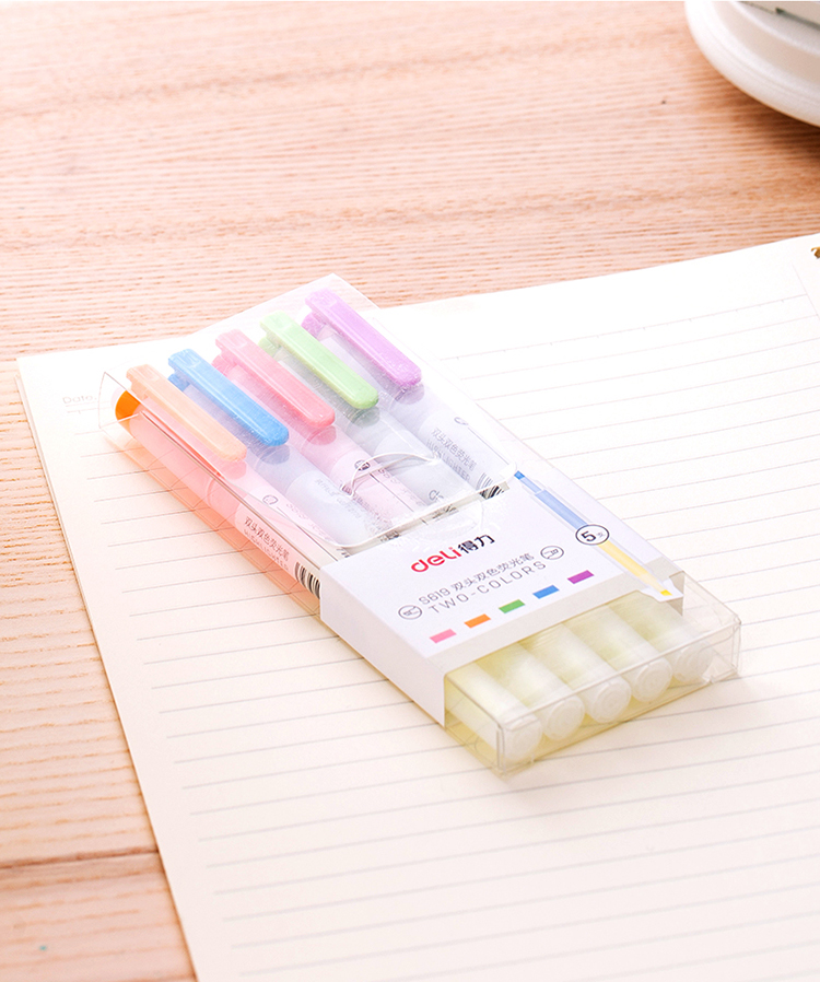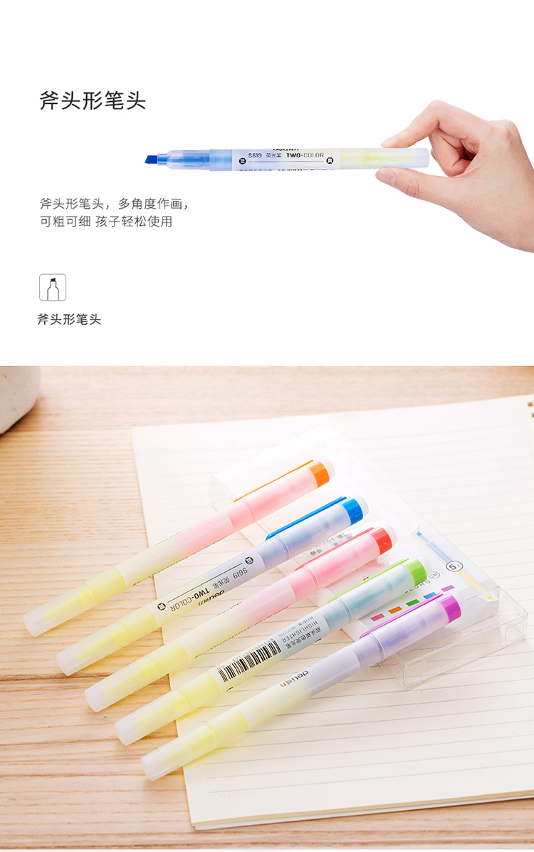 • 商品名稱:得力(deli)6色雙頭雙色熒光筆重點(diǎn)標(biāo)記筆 手帳可用水性記號(hào)筆5支/盒 S619