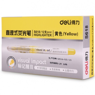 • 商品名稱:得力(deli)黃色直液式重點標記熒光筆 手帳可用水性記號筆12支/盒 S618