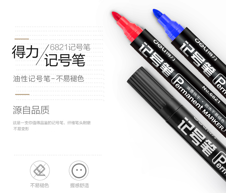 • 商品名稱:得力(deli)黑色粗頭物流油性記號筆大頭筆 簽名筆馬克筆10支/盒6821